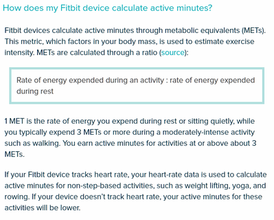 Active Minutes are based on Mets based on calorie burn a s described below.