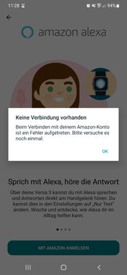 Ich versuche seit 2 Tagen Alexa auf meiner Versa 3 zu aktivieren. Ich bekomme aber jedes mal nur die Meldung das beim Verbinden mit Amazon ein Fehler vorliegt. Wie zur Hölle verbinde ich das? Habe auch den Fitbit-Skill bei Alexa aktiviert, hilft nur leider nicht weiter. Cookies gelöscht hab ich auch schon, hat auch nix geändert.