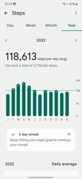 2023 and 2022, Daily step average in year view is exactly 1/32nd of the annual total - Why??!!