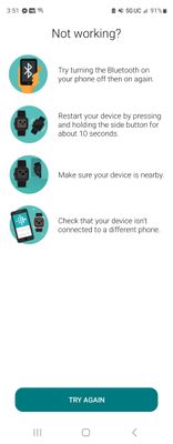 Hello, I currently have a Flip3 on Android Version 13 (F711wvlu3evl9) and running the fitbit app version 3.73 (37381041) and a charge 5 version 57.20001.188.58 and I cannot connect the two devices. I am stuck on the "Searching for Charge 5" screen. Any advice?