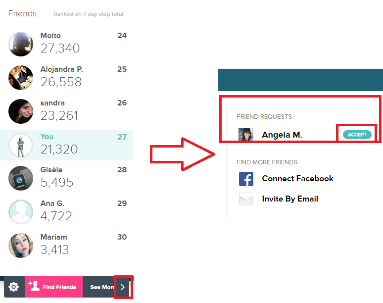 @JLec Welcome to the Fitbit Community! That is very strange! I recommend to check on the online dashboard to accept your friend. Hover your mouse over the friends tile and click the arrow that says "see more". Then you will have your friends displayed. On the right side you will see "friend requests" and the pending requests that you have. Your friend should be there. I left a picture below showing how it looks. Regarding the app, log out from the app, reboot your phone, and log back in. That should help fixing the issue.