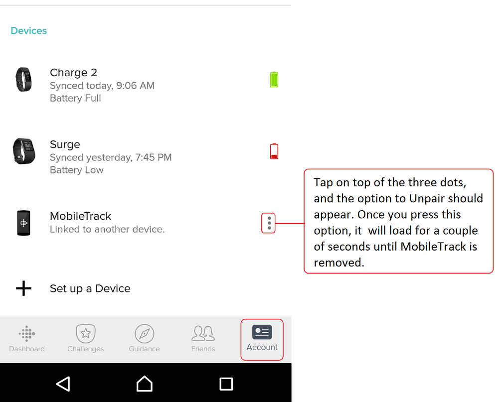 I have OnePlus 5 and trying to connect fitbit app through mobile tracker which I unpaired mistakenly, but now I am not getting option to connect fitbit app through mobile tracker, I have checked "Set up device" section under Account menu but couldn't able to see mobile tracker option. Can somebody help me on this issue.