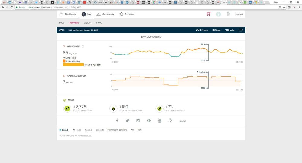 Alejandra, Here's a screen shot of the situation about which I was asking. If you look in the middle of the trace, the calories burned falls before my pulse falls (the dip where it goes blue, in the middle) and I wanted to understand why that was. I don't think there's anything wrong with the device, but I'm curious why this seems to happen (and it's not the only time I've seen it).