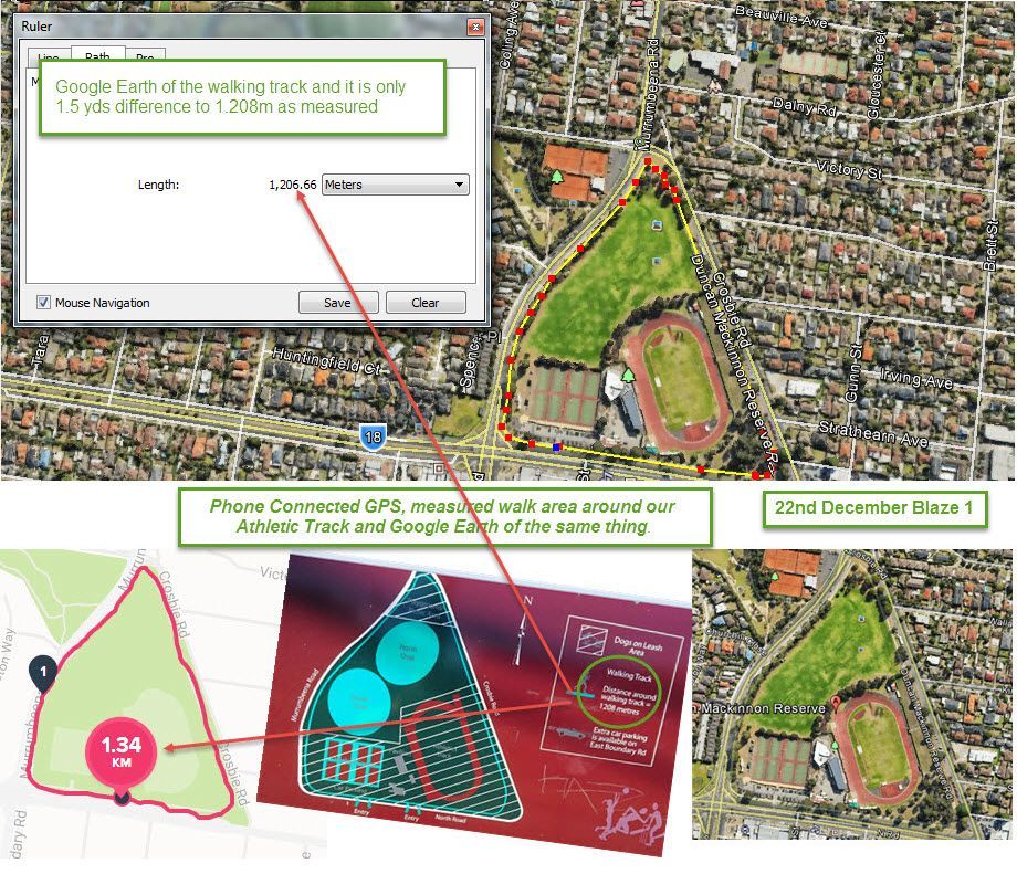 @mvan231and @bbarrera Here is an earlier image on the same day 2jan17. The engineer in me comes out when I compare Fitbit devices. This one, I used Google Earth to check our local council's measurements on the display board in sports area.