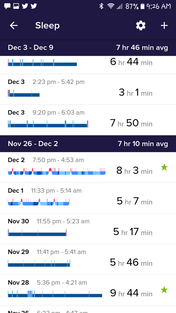 I confirmed versions you suggested on my phone as well as my Blaze. Still not showing sleep stages. Here are screen shots of of sleep patterns. First 2 days, sleep stages showed.