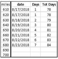 8/22 steps 30,357, 133 floors, 13.79 miles Sure was tired after this! So was my horse!. Trail ride in the National Forest starting at an old homestead site called Willie Lee. Eleven riders rode 9.3 miles up and down the hills. First time Char & I have been on a horse in two months. Beautiful weather!