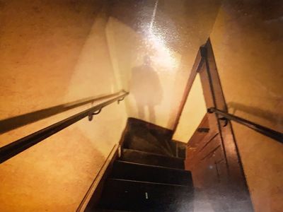 Painting of stairway in Poe House