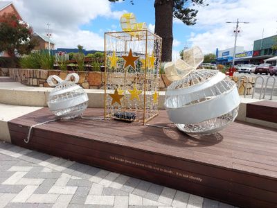 This fine tree is in our town square. The lights each have sponsors, with the names of loved ones who have died written on the board.