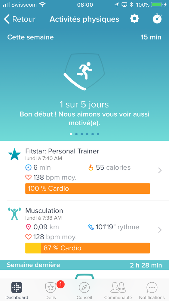 Si, je ne fais juste plus de musculation en salle. Et je n'enclenche plus ma montre en parallèle lorsque je fais mes séances fitbit coach. Je me contente des données automatique que l'application calcule pour leur séance quel que soit l'effort de chacun.