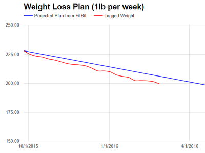 I decided to use just two weight loss goals for myself. The first is 43 pounds, from 228 down to 185. When I hit that one, or shortly before, I'll decide how much farther I want to go based on how I look and feel at 185. I use the weight loss chart to keep myself motivated; I love seeing that sloping line get closer to my goal each month, and I think if I changed my goal frequently I'd miss out on that motivator.
