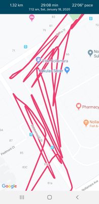 Please find images for examples. I noticed it has actually done the same for my runs and my bike rides. The first image is of my ride this morning, as you can see by the last image of a map, the distance is correct however the tracking is wrong. It makes no sense! Haha.