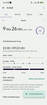 so wird seit ein paar Tagen mein schlaf aufgezeichnet. Das hat sich seit dem Wochenende auch geändert. Vorher war angezeigt oh leicht, Rem oder Tiefphase war.