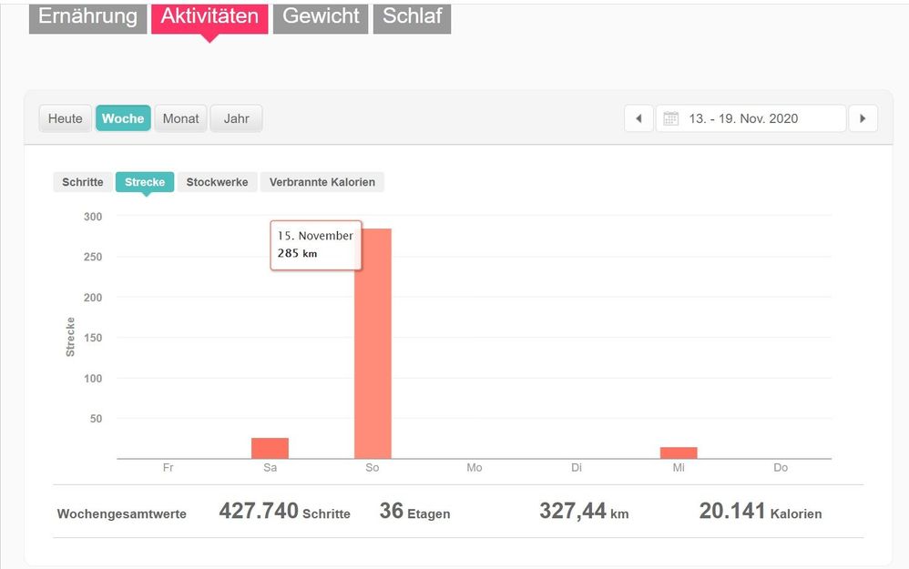 Im Aktivitätsverlauf erscheint der 15.11 gar nicht mehr: