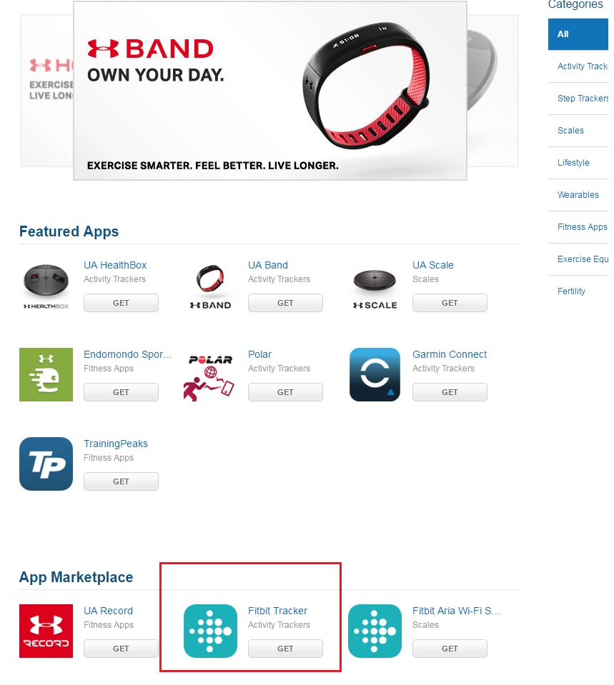 Select the Fitbit App and press the option "Get" this will associate both of your accounts again.