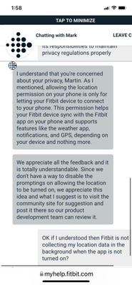 Totally agree…users should have a choice in whether they want to opt for full location disclosure without the annoyance of a pop up message. The response from Fitbit is fustrating and doesn’t address or solve the core issue.