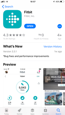 See also the the screenshots below regarding my Fitbit app version (displayed on the iOS App Store with no update available, on iOS 12.4) and Fitbit Inspire HR software version.