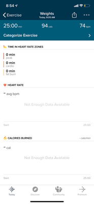 Same issue - only data for the work out is for the time. Started on Wednesday, Feb 26th - I'm on ver 3.15.1
